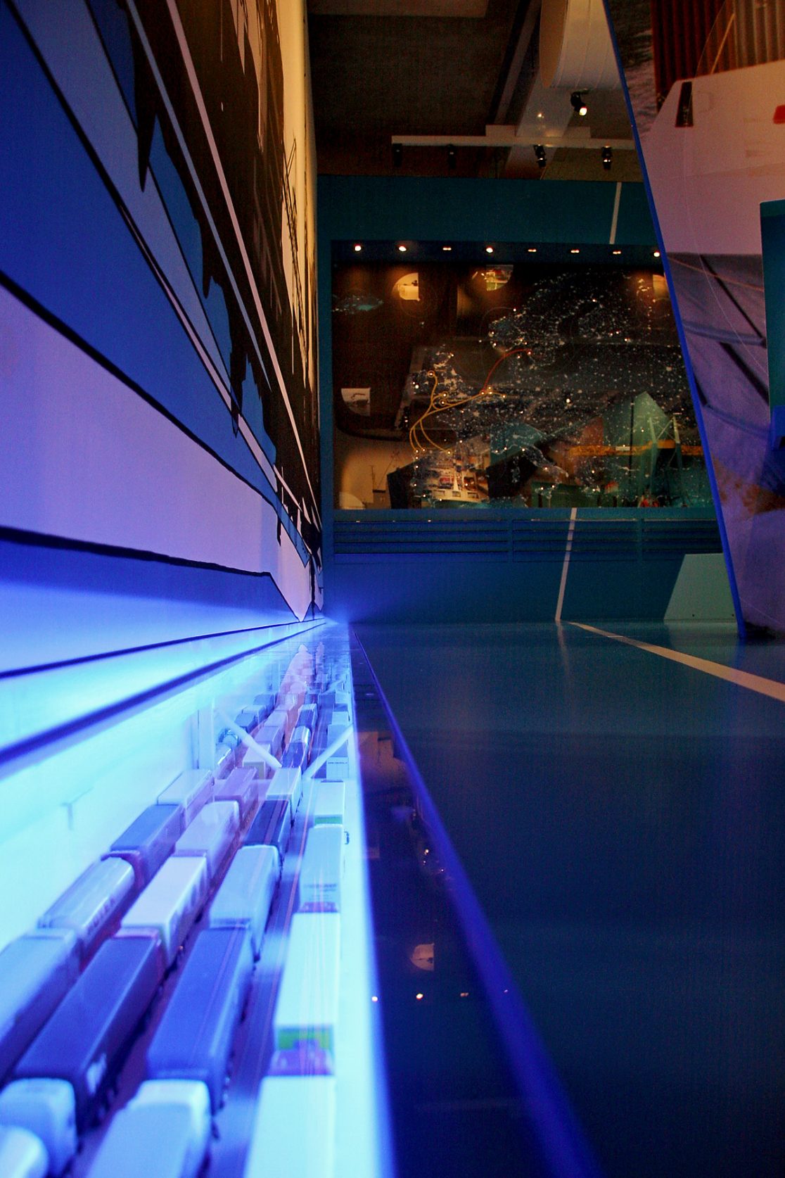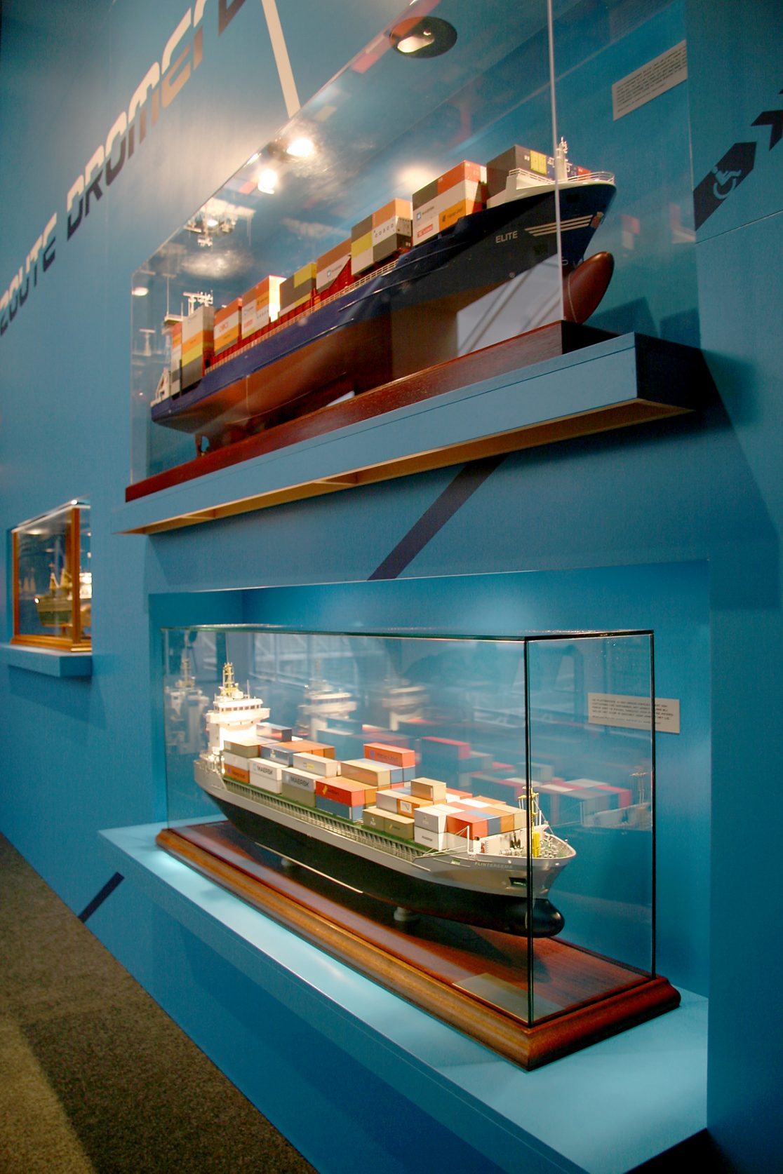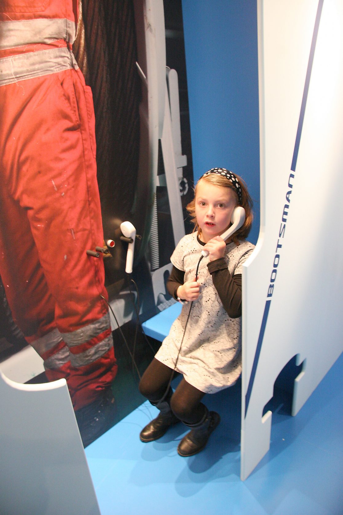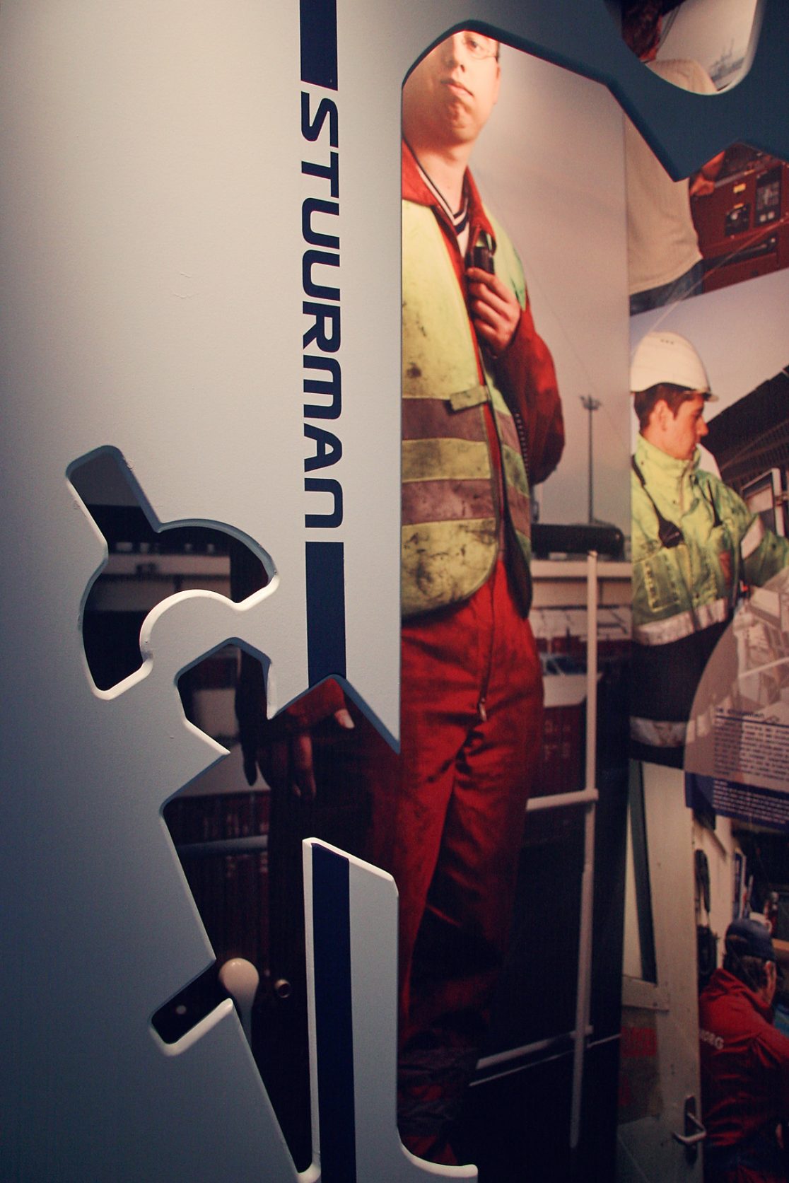 Op de achterwanden is het achtersteven van een short-sea boot te zien. De verhalen van de verschillende bemanningsleden zijn prachtig gefotografeerd en larger than life geplaatst in nissen waarin het persoonlijke verhaal wordt verteld.