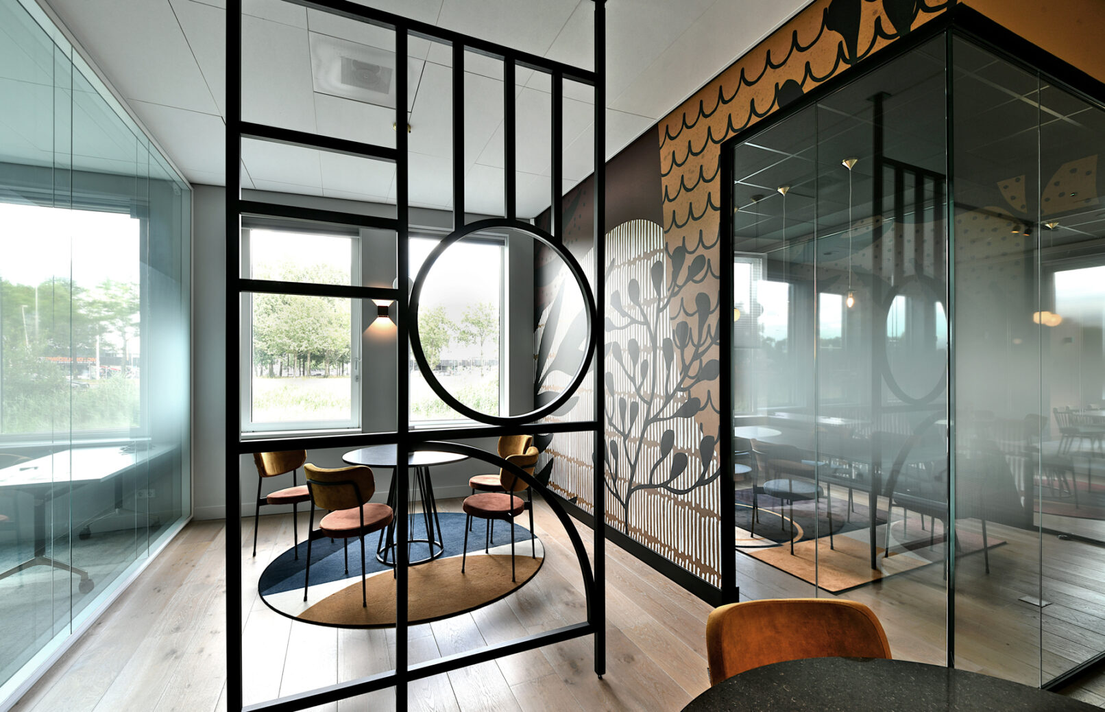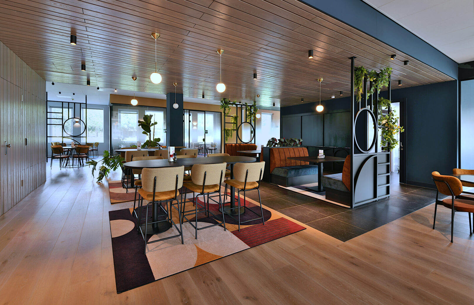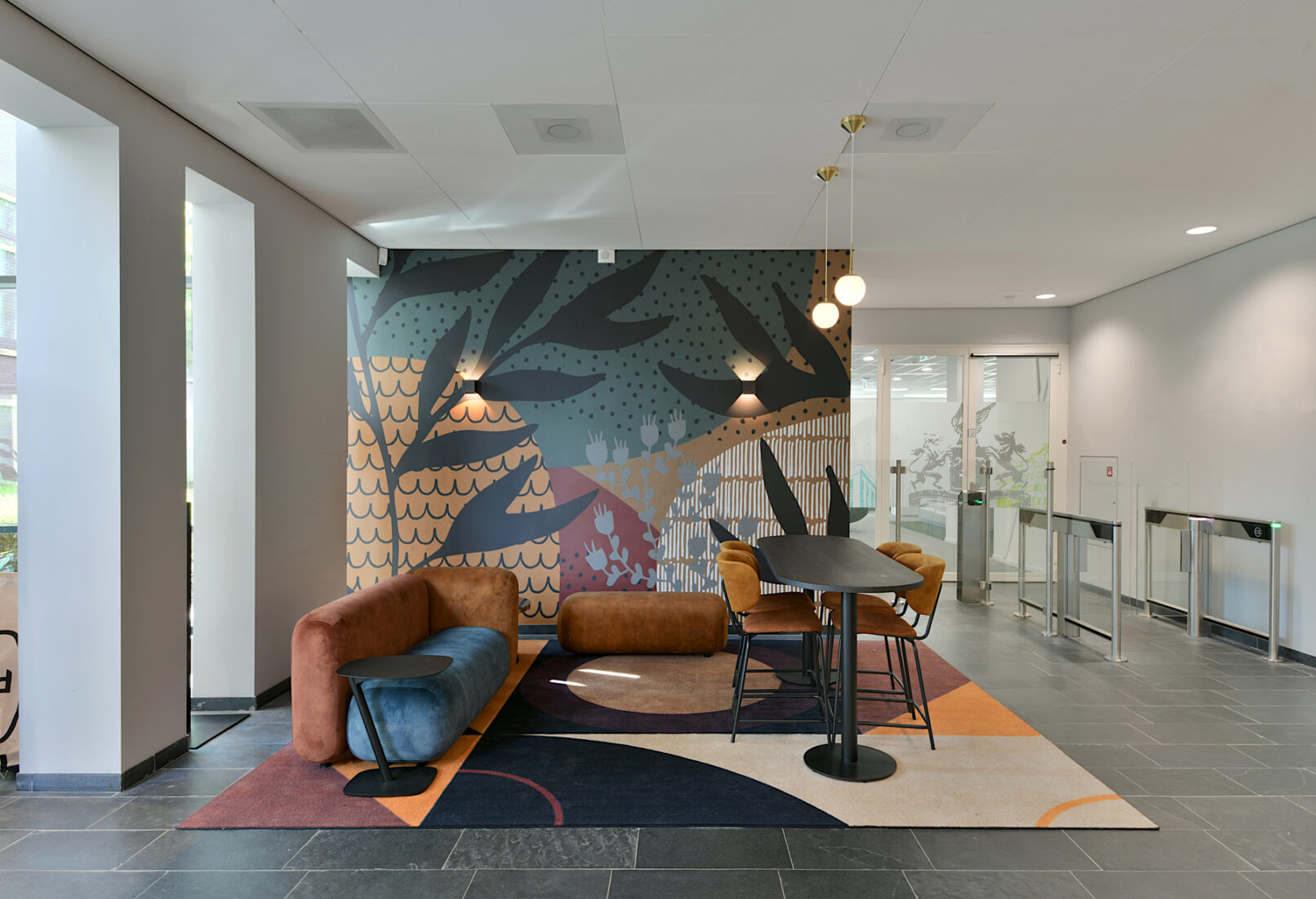 Van een ‘werkhuis’ met een 09.00-17.00 uur bezetting naar een ‘clubhuis’ ter bevordering van de sociale cohesie. Werken kun je overal, elkaar in een goede zakelijke setting ontmoeten niet. Normaalkracht ontwerpt de Community area van het Tetrade gebouw te Breda. De entreezone op de begane grond heeft een complete transformatie ondergaan. Een warme sfeervolle ontvangstplek is gecreëerd waar kan worden geluncht, vergaderd en waar ontmoetingen plaatsvinden. Dit past helemaal in de huidige tijdsgeest. Gekozen is voor een kleurrijke omgeving. De speciaal voor deze ruimte ontworpen wandbekleding, vloerkleden en het gekozen meubilair, versterken de identiteit en zorgen voor een vleugje nostalgie.
