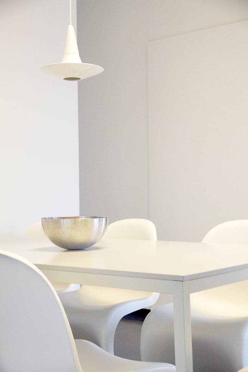 De ruimte, in een wederopbouwpand uit de jaren 50, werd helemaal gestript en opnieuw gestyled, waarbij de rauwe betonnen bouwkundige verdiepingsvloer in het zicht is gebleven.