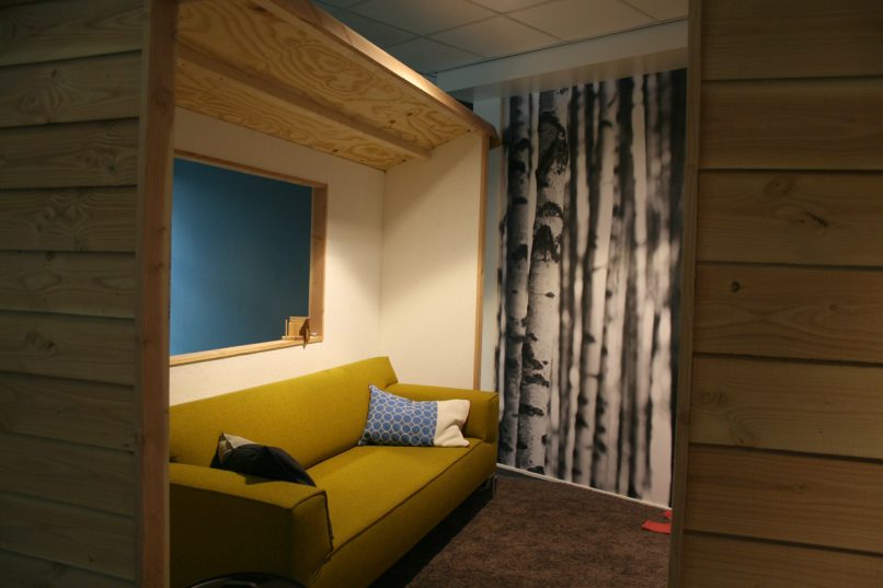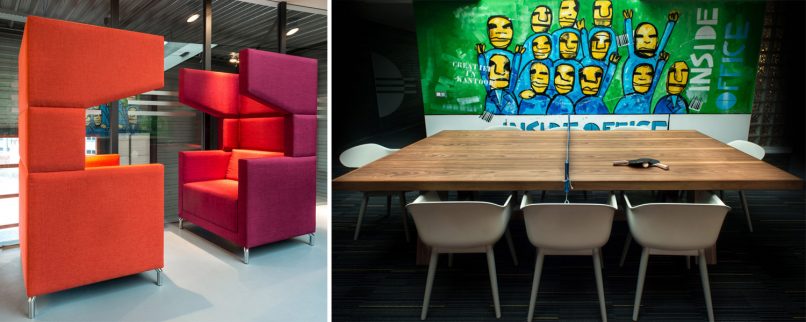 Het thuis voelen op kantoor is vertaald in een ruimtelijk concept met als pay-off: “@home @the office”.