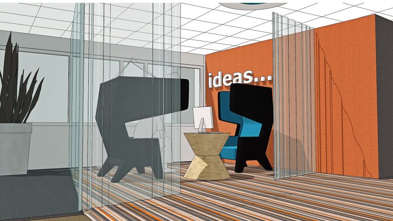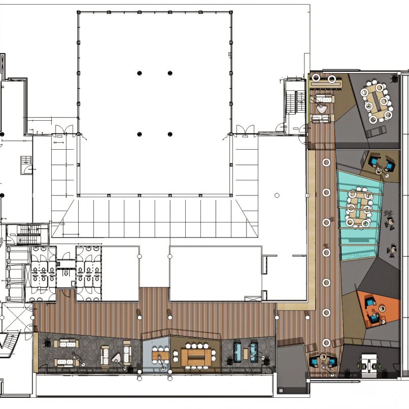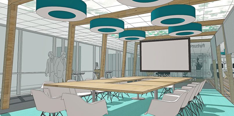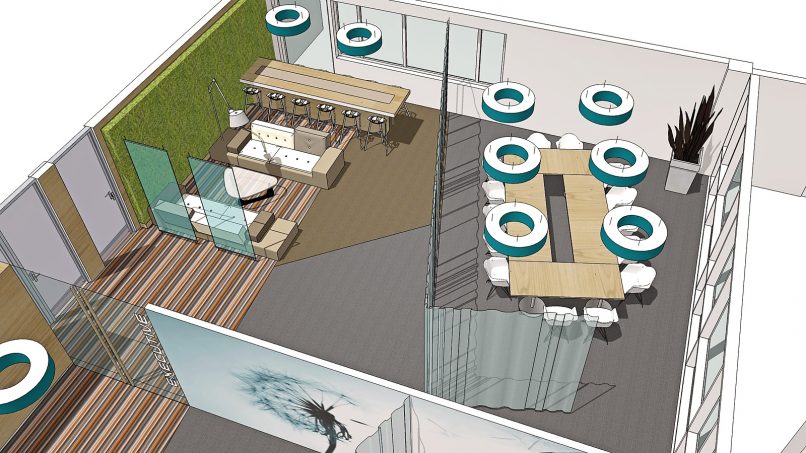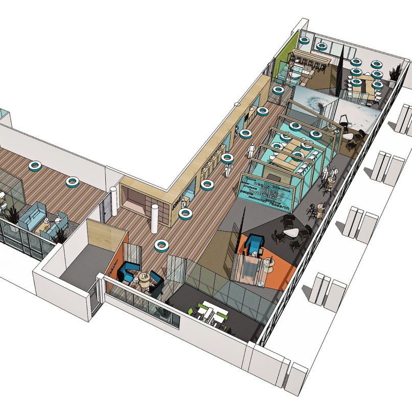 Een dynamische nieuwe indeling en de prominente plaats en het opvallende ontwerp van de scrum-plek moet de ruimte aantrekkelijker maken voor medewerkers en bezoekers.
