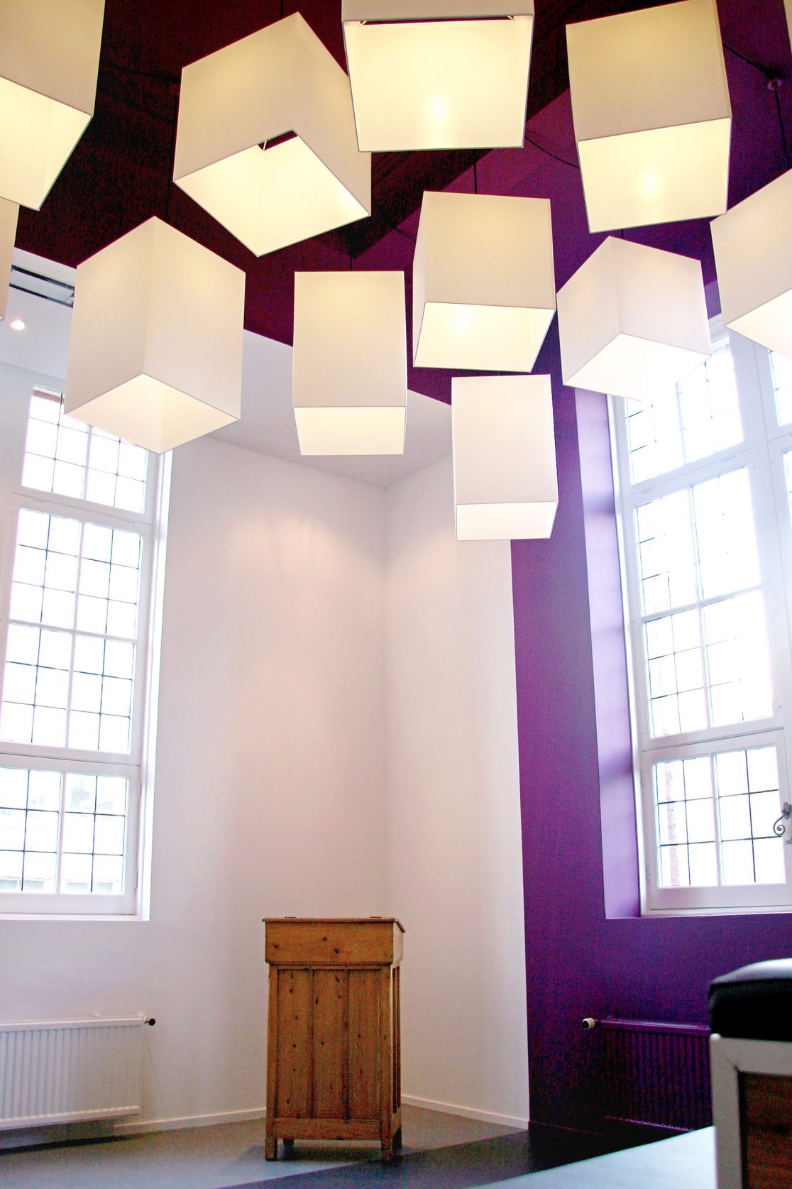 De prominente paarse ruimte dankt zijn naam aan de prominent aanwezige paarseverfde muren.