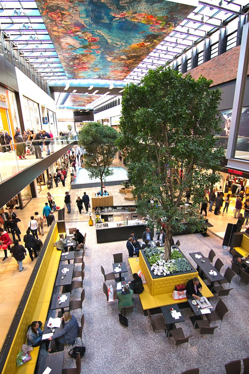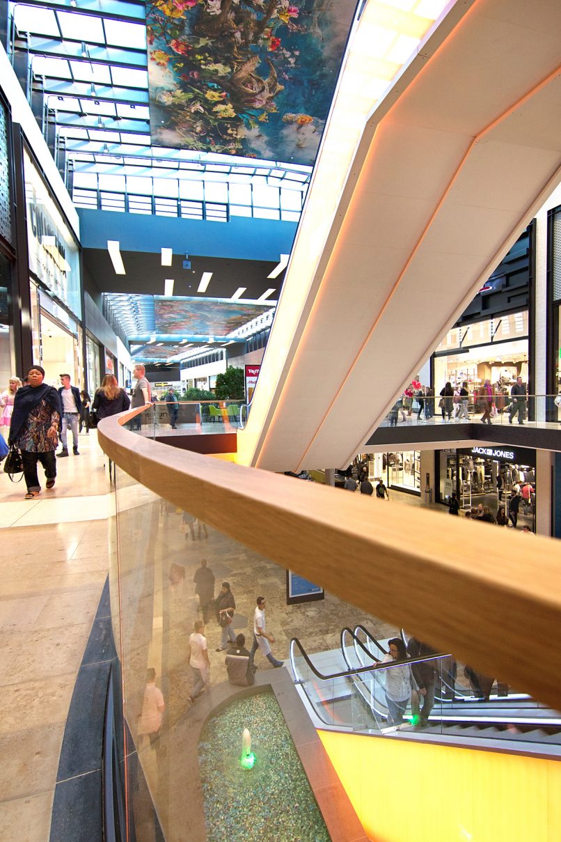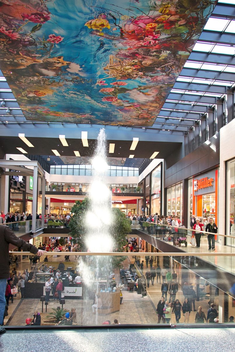 Interieurontwerp van de gloednieuwe shoppingmall in Rheine, Duitsland.