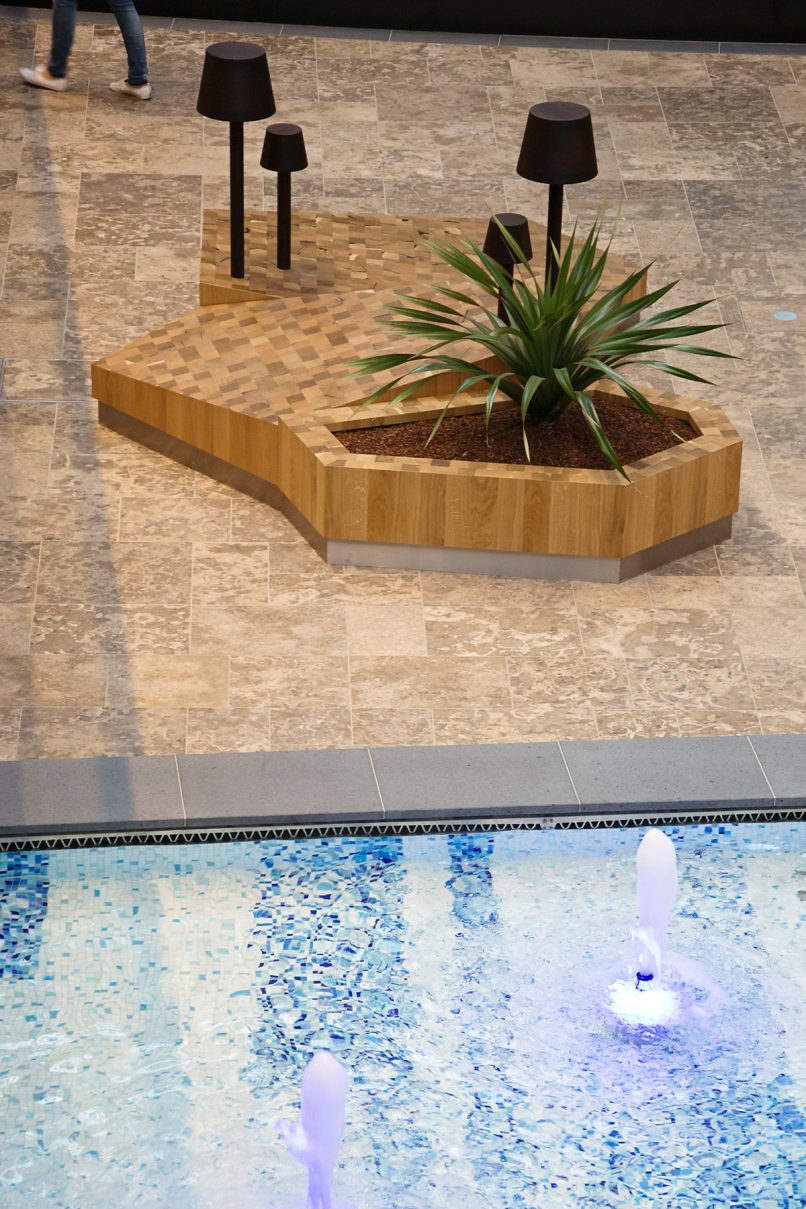 Normaalkracht heeft meegewerkt aan de interieurvormgeving van de Foodcourt het meubilair en de openbare ruimte tussen de shops.